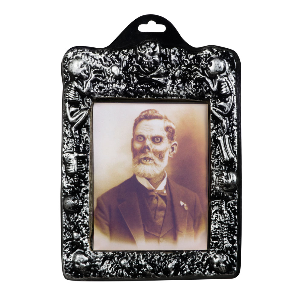 3D taulu. Toisesta suunnasta vanhan miehen kuva ja toisesta suunnasta kauhutaulu. Koko20x26cm. Muovia.