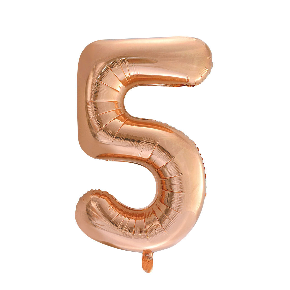 Foliopallo numero 5. Korkeus 86 cm. Huom! Ei sisällä heliumia. Väri: ns. Ruusukulta.