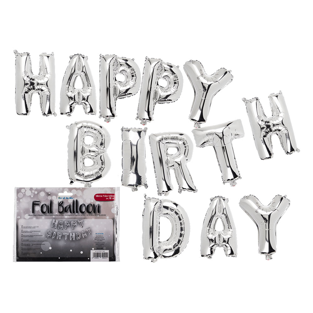 Hopeanväriset Happy Birthday-foliopallot, koko n.40cm/pallo. Täyttö erikseen itse tai myymälässä.