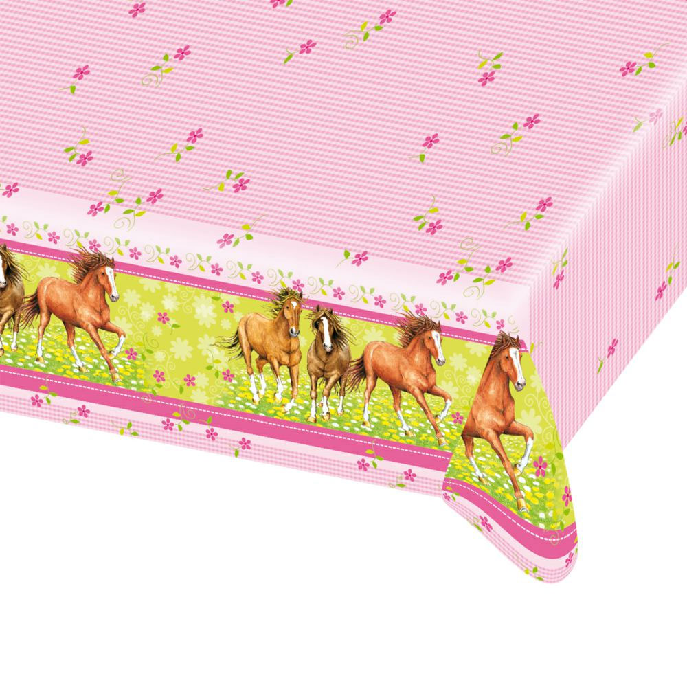 Kaunis hevosaiheinen muovinen pöytäliina, koko 180cm x 120cm