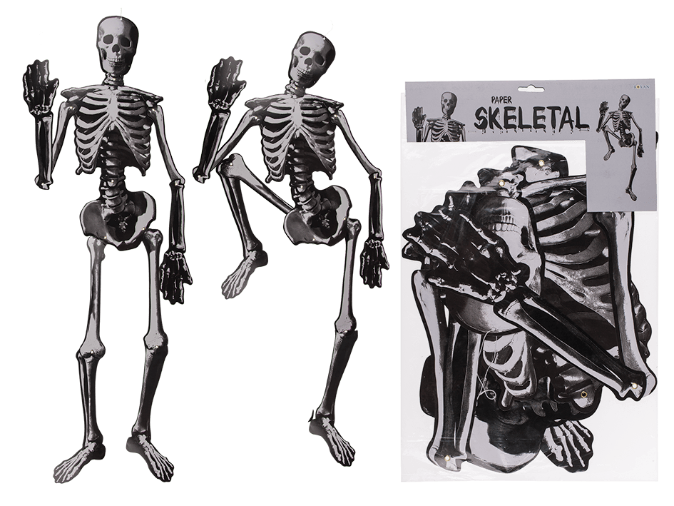 Pahvinen luuranko seinäkoriste. Saa taiteltua haluamaansa asentoon. Korkeus 134,6 cm