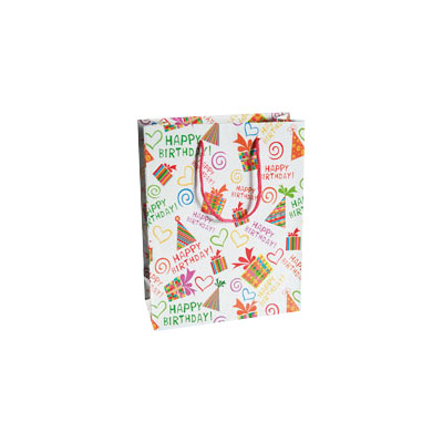Valkoisella pohjalla Happy Birthday teksti. ca. 25 x 8,5 x 34,5cm.