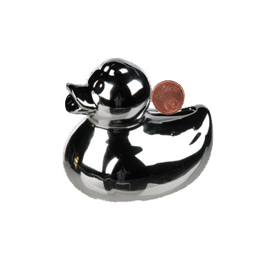 Hopeanvärinen ankka säästöpankki. Ca.8cm