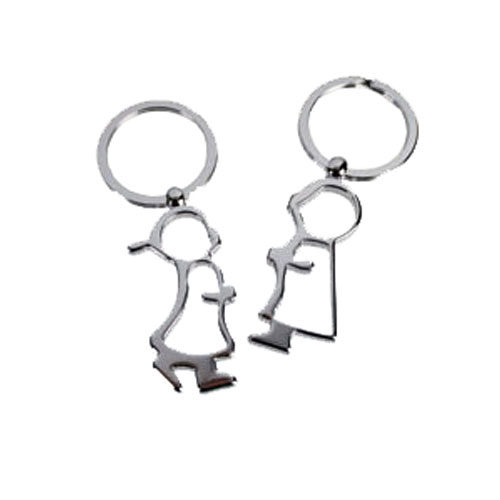 Tyttö ja poika. Toinen puoli vaikka itselle ja toinen ystävälle. Ca.4cm. Lahjarasiassa.