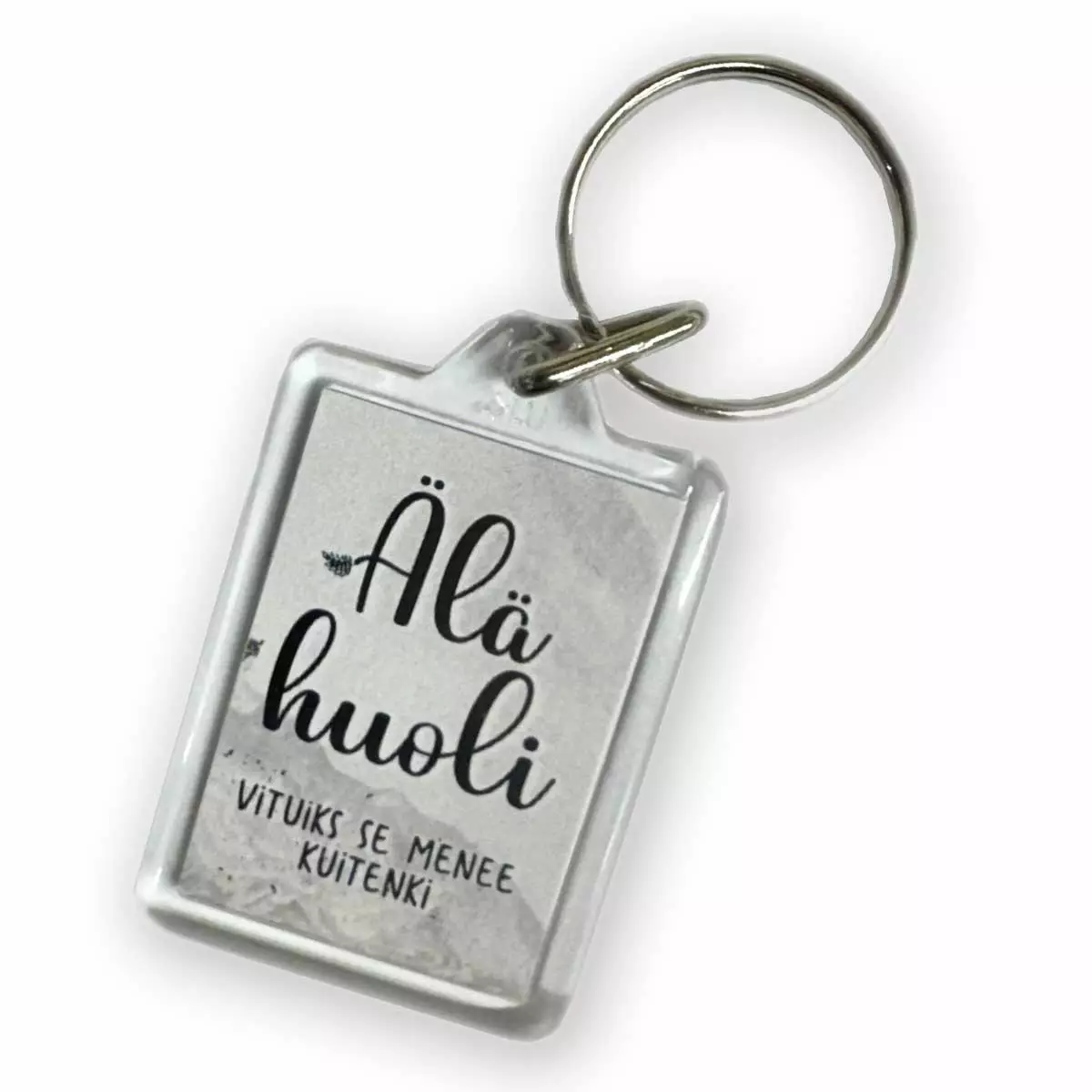 Muistiksä kotiavaimet? Täs ois avaimenperä iiiihanalla aforismilla. Muovia, painatus molemmin puolin. Koko 4*5cm.