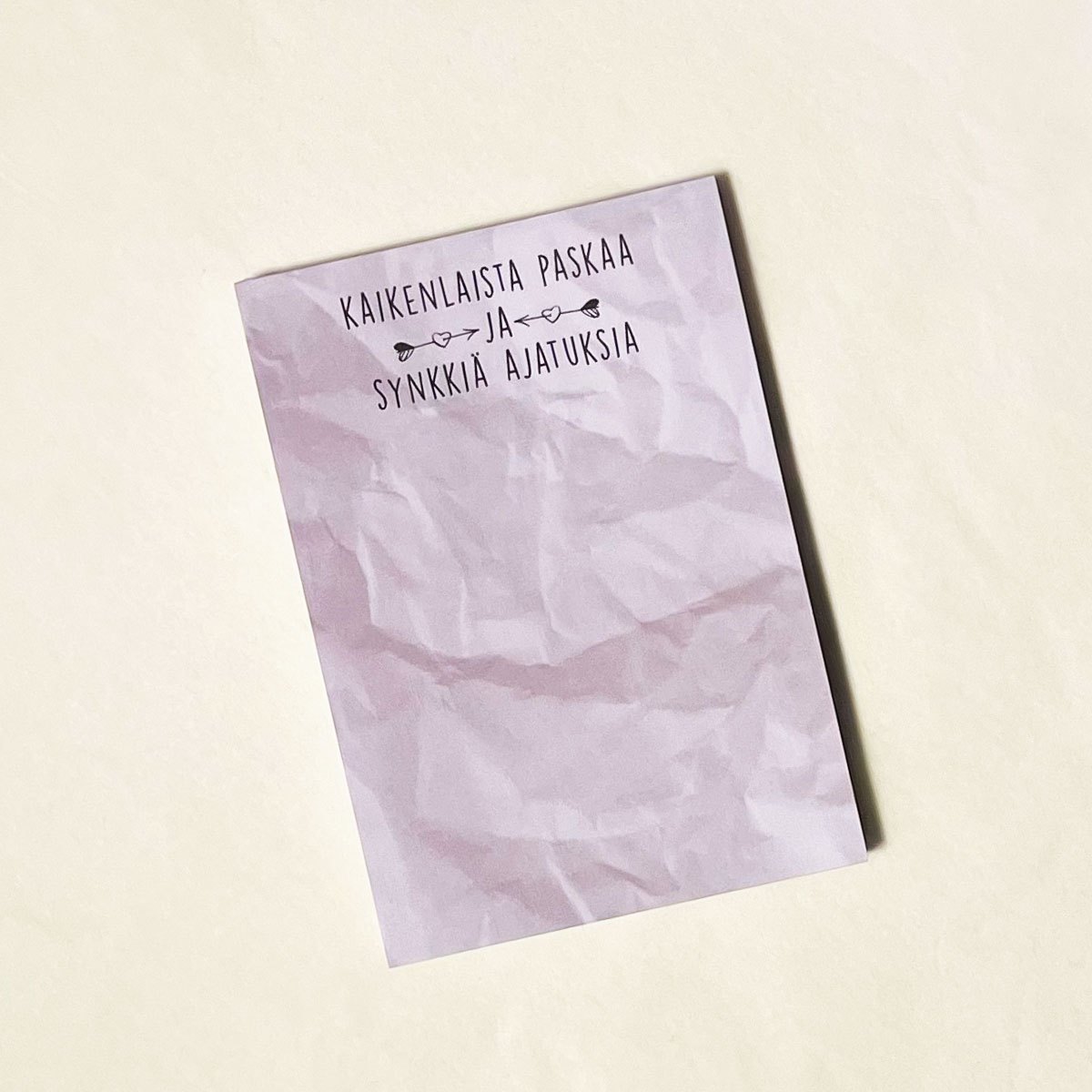 Pieniä, mutta ehkä jotenkuten tarpeellisia muistilappuja vaikkapa kaikenlaisten haaveiden ylöskirjoitteluun. Koko: 7,5×10,5cm Taustapahvi, liimaselkä, 50 arkkia