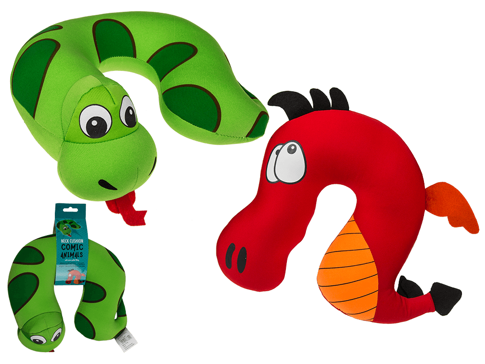 Hauska punainen lohikäärme niskatuki lapselle. 92% polyesteriä, 8% elastaania. Koko 27x25cm.
