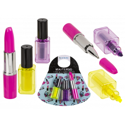 Kauniiseen settiin kuuluu 2 kynsilakanmallista päälleviivauskynää ja yksi huulipunakynä