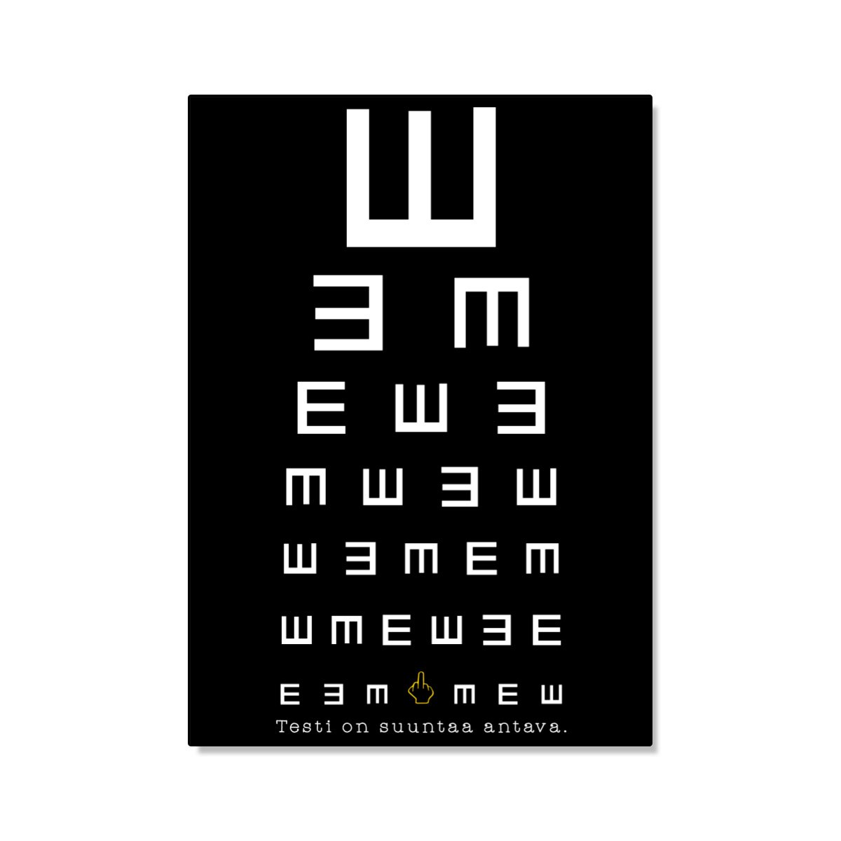 Mitä ihmettä siinä lukee? Tarviinko mä silmälasit? Testaa itse ja anna kaverin testata myös! Koko: A6 (105mm X 148mm)
