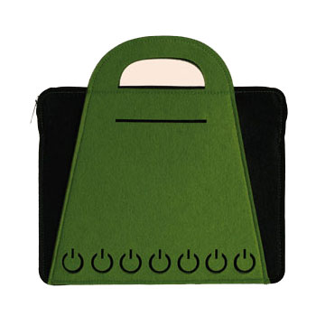 Tummanvihreä iPad laukku kantokahvoilla. Vetoketju kiinnitys. 28x28cm.