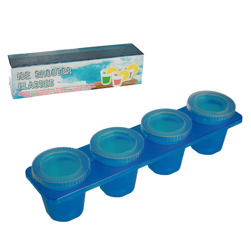 Jäädytettävät shottilasit sis. 4-jääshottilasimuottia. Hauskat lasit jotka pitävät shotit taatusti kylminä.