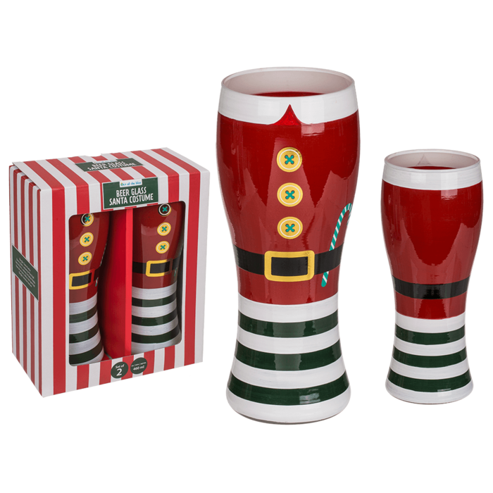 Joulupukin asu teemaiset olutlasit. 2kpl pakkaus. 460ml.