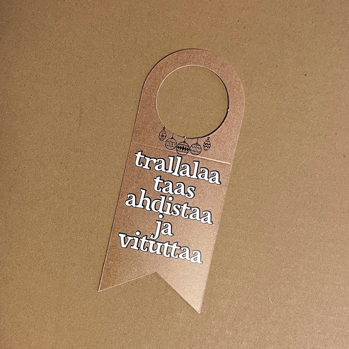 Tukevasta kartongista valmistettu joulupullon koristeluun tarkoitettu härpäke!