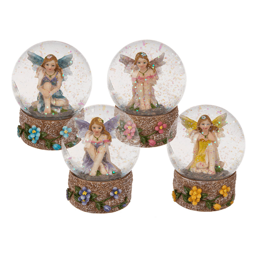 Keiju hiutalepallossa, Nätti keiju pallossa jossa glitterihiutaleita, koko 8,5cm x 4,5cm.