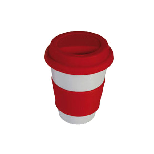 Punasävyinen keraaminen takeaway kahvimotin mallinen juomamotti. Esim.kahvi pysyy pitempään lämpimänä. Koko 12x9cm.