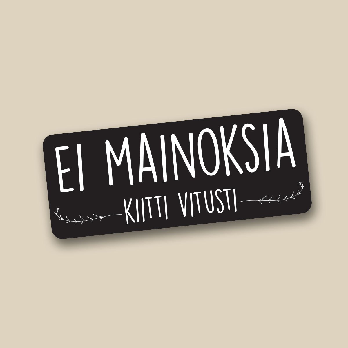 Onko loota täynnä mainoksia? Tällä 4cm * 10cm kokoisella tarralla ilmoitat kohteliaasti, että ei kiitos mainoksille. Säänkestävää matskua!