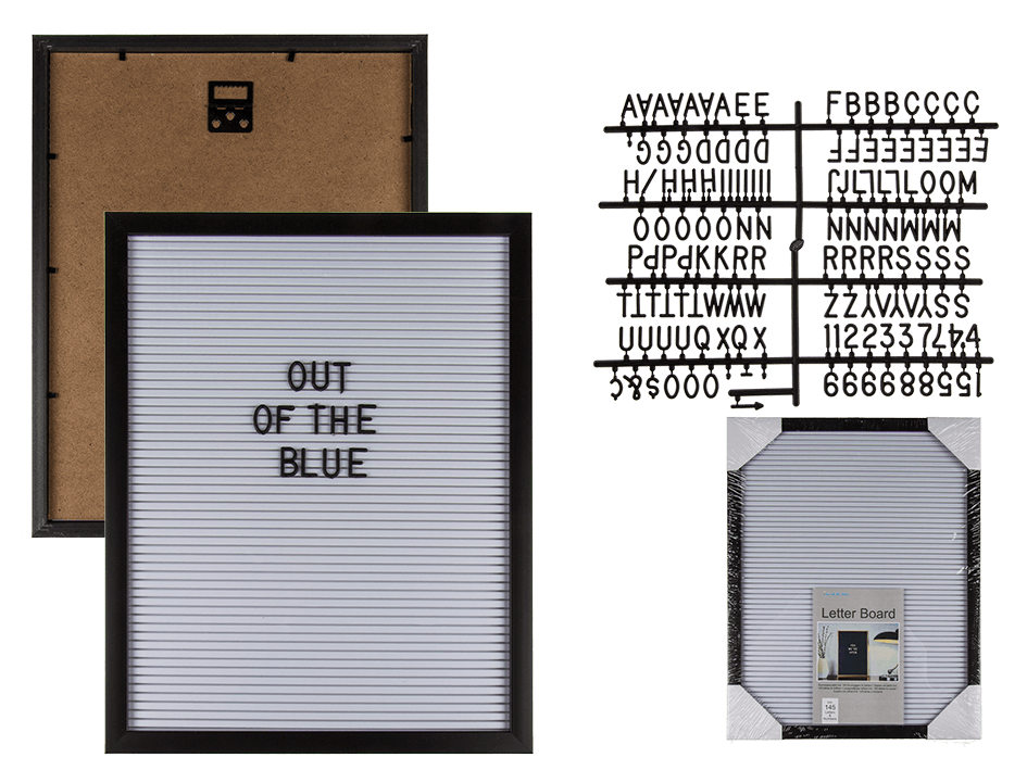 Hauska taulu, johon saa kirjoitettua tekstejä. Sisältää 145 numeroa ja kirjainta. Taulun koko 28x35cm