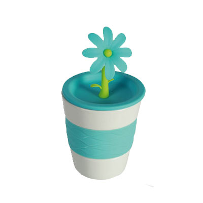 Ihana kesäinen posliini kukka muki silikooni kukka kannella. Käy vaikka koristeena. Koko 8 x 9,5cm.