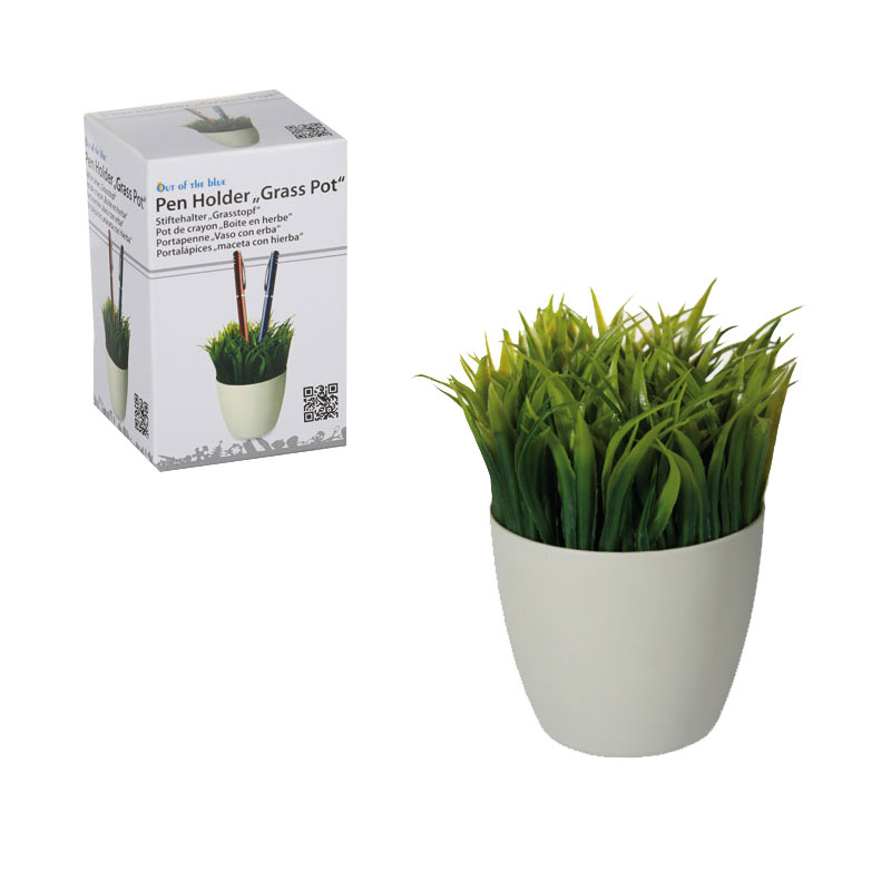Hauska muovinen kynäteline ruoho ruukku. Ca. 12 cm.