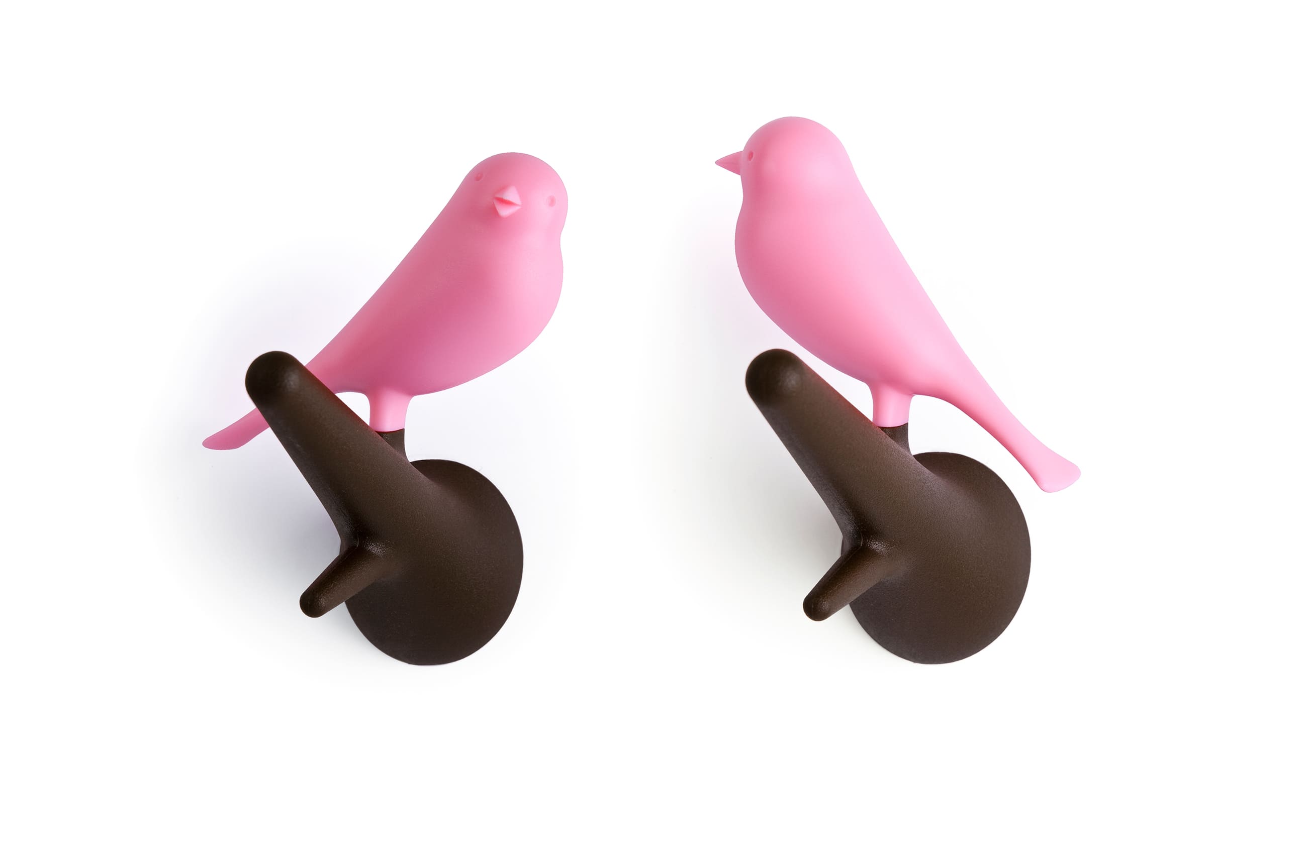 Mustalla oksanmallisella orrella istuu vaaleanpunainen lintu. 2kpl setti. Ihanat katseenvangitsevat seinäkoukut eteiseen, keittiöön, makkariin, lastenhuoneeseen... sisältää ruuvit. Koko5x7x11cm