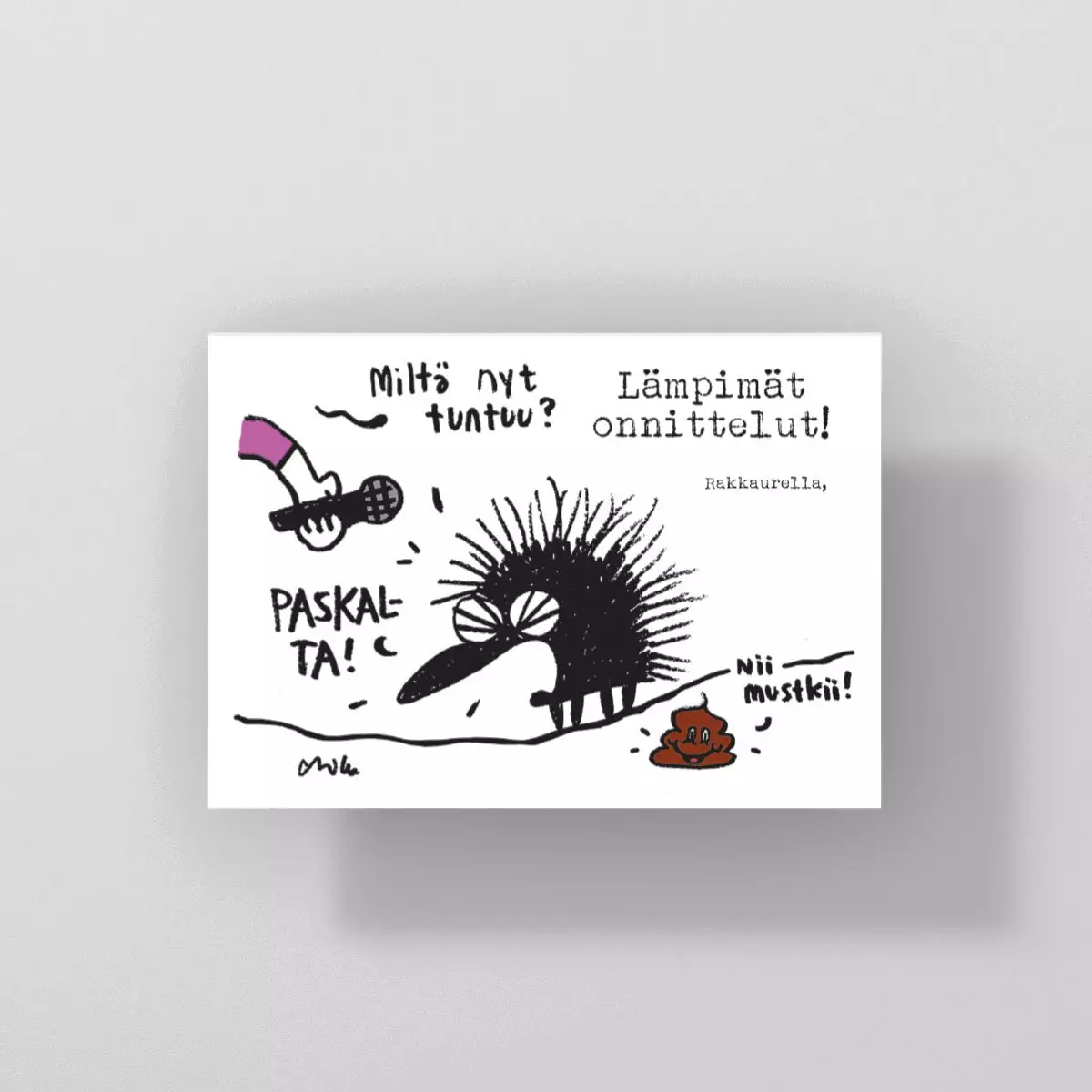 Kiroileva siili postikortti, miltä nyt tuntuu, no paskalta! Helppo tapa kysellä kuulumiset! Koko: A6 (105mm X 148mm)