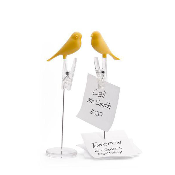 Keltainen lintu Muistilappu pidikkeellä. Koko 22x7cm.