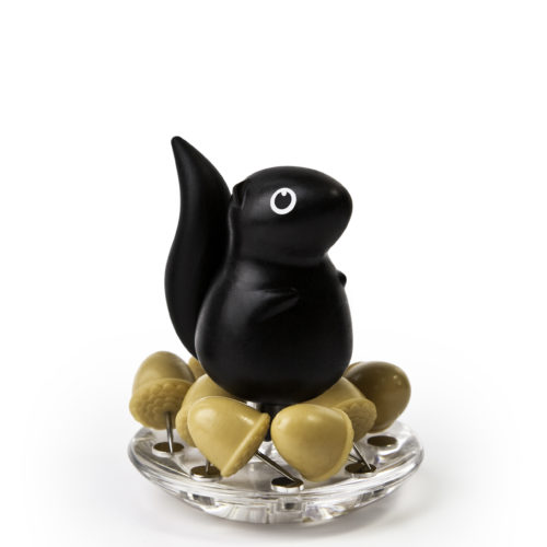 Valkoinen Orava, joka pitää huolta että tammenterho niitit pysyy tallessa. 6x6x7cm