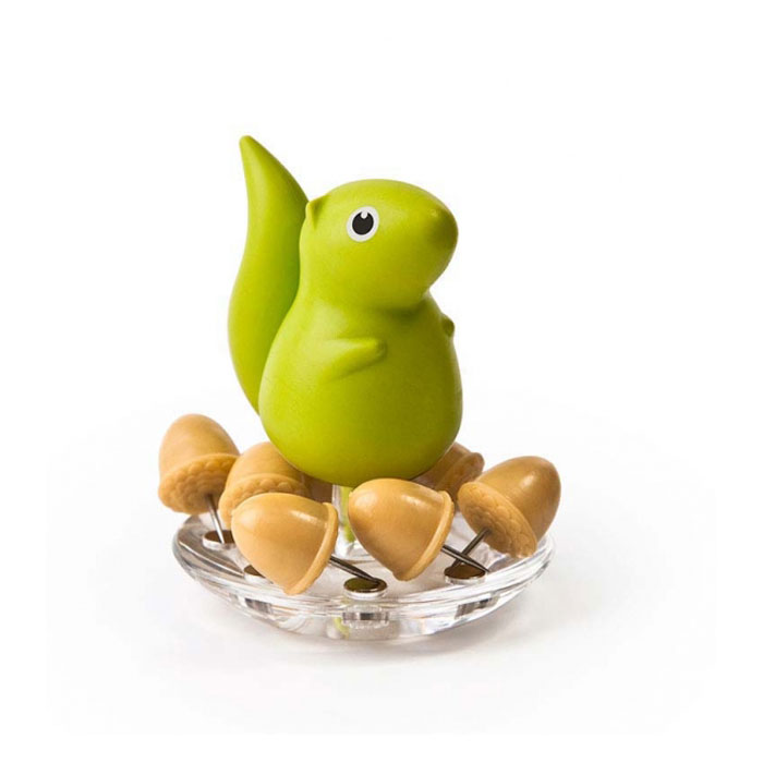 Vihreä Orava, joka pitää huolta että tammenterho niitit pysyy tallessa. 6x6x7cm