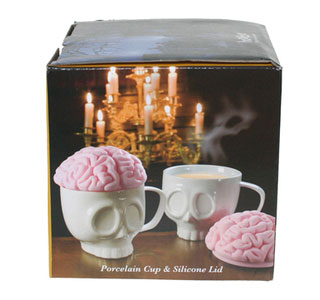 Pääkallomotti punaisilla aivoilla. Aivot pitää juoman lämpimänä pidempään.