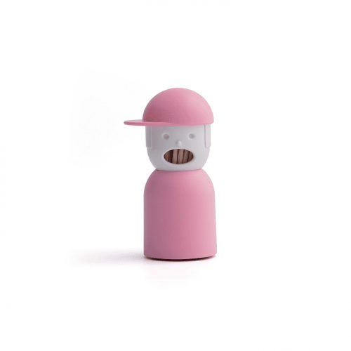 Picky Boy Qualy hammastikku teline. Nostamalla pojan lakkia saat hammastikut esille. Väri pinkki-valkoinen. Koko n. 9 x 4,4 cm.