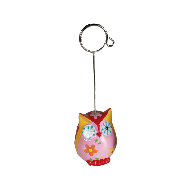 Suloinen pöllö korttipidin. Korkeus 12cm. Väri pinkkikeltanen