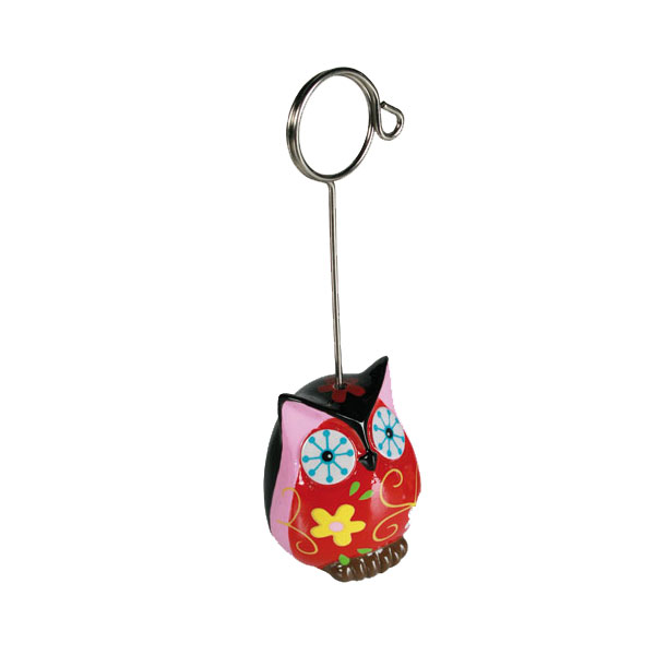 Suloinen pöllö korttipidin. Korkeus 12cm. Väri punapinkki.