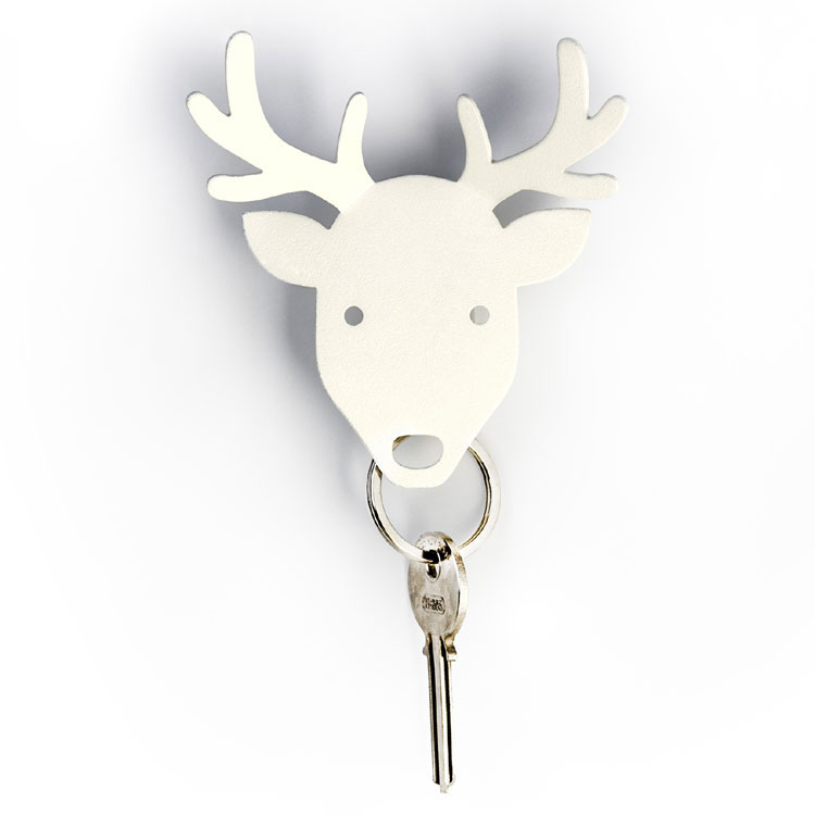 Valkoinen poro, jonka sarviin voi ripustella avaimia ja vaikkapa koruja voi laittaa.Lisäksi sarvien alapuolella on voimakas magneetti johon voi avaimet kotiin tullessa laittaa. Sisältää yhden avainrenkaan. Koko:87 x 94 x 38 mm