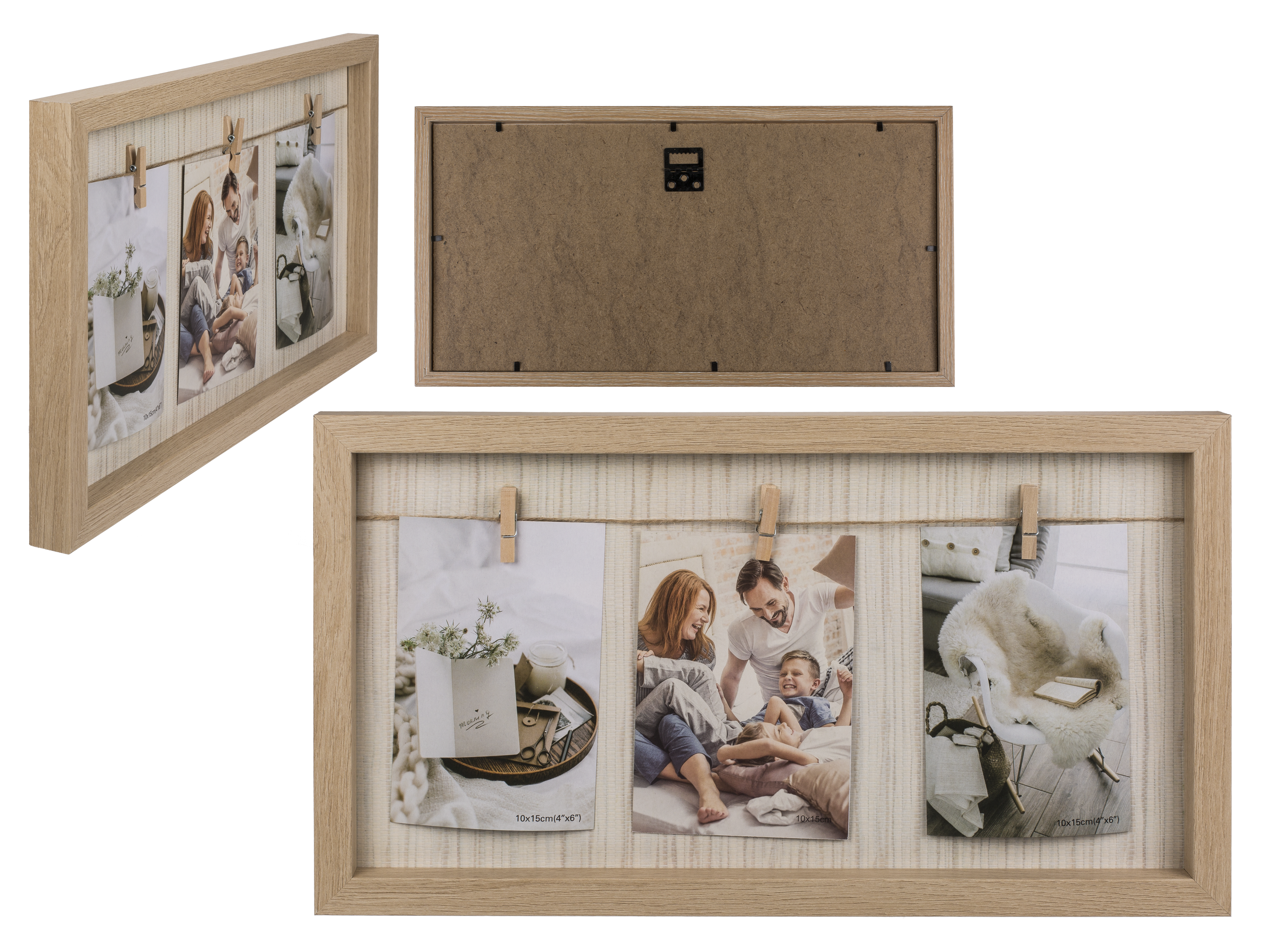 Puinen valokuvakehys koko 43x24cm. Paikat kolmelle valokuvalle.
