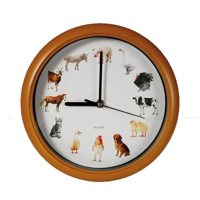 Muovinen seinäkello maatilan eläimet äänillä. Halkaisija 25cm. Tarvitsee toimiakseen 1 X AA patterin. Patteri ei sisälly hintaan.
