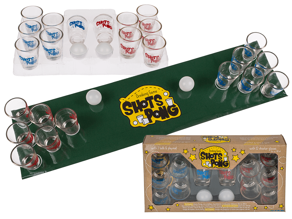 Juomapeli. Shots pong. Peliin kuuluu 12 shottilasia 60ml ja 2 palloa.