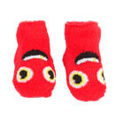 Pehmeät punaiset töppöset hauskoilla naamakuvilla.
