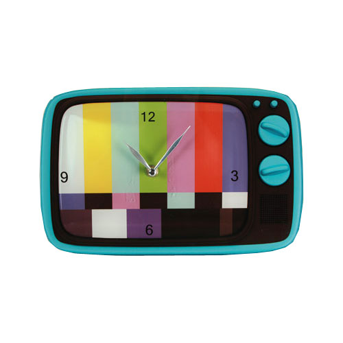 Sinipohjainen testikuva tv-kello. Koko 30x20cm.