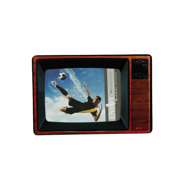 Hauska vanhan television mallinen kehys. 10x15cm.