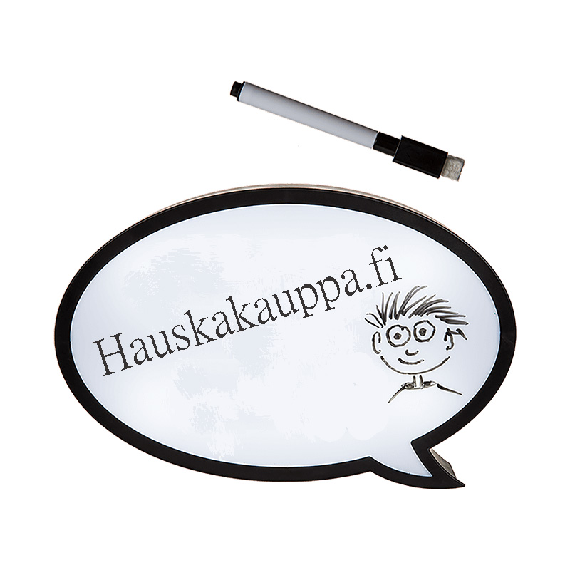 Puhekublan mallinen valotaulu. Koko 30x22cm. Toimii 6xAA paristoilla (ei mukana) Valotaulun mukana tulee kynä jonka toisella päällä voi kirjoittaa ja toisella pyyhkiä.