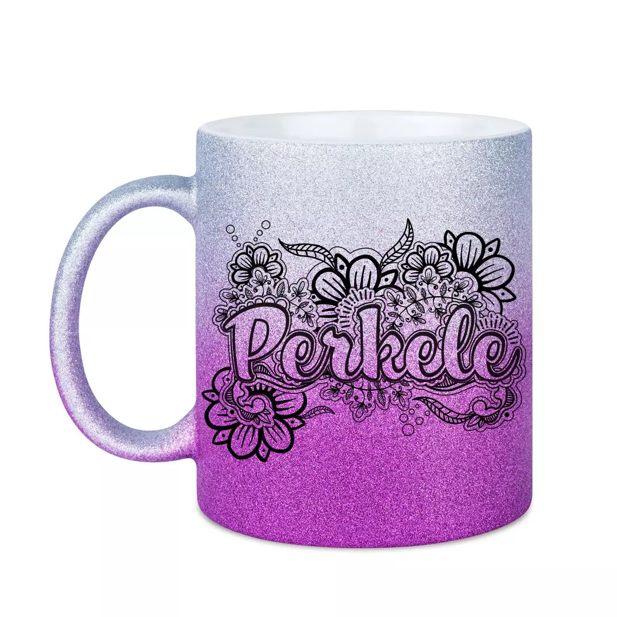 Kaunis hopean ja purppuran väreissä kimalteva glitteripaska Perkele-tekstillä. Niin on nätti, että. Painatus molemmin puolin. Vetoisuus 3,3dl. Käsinpesua suositellaan.