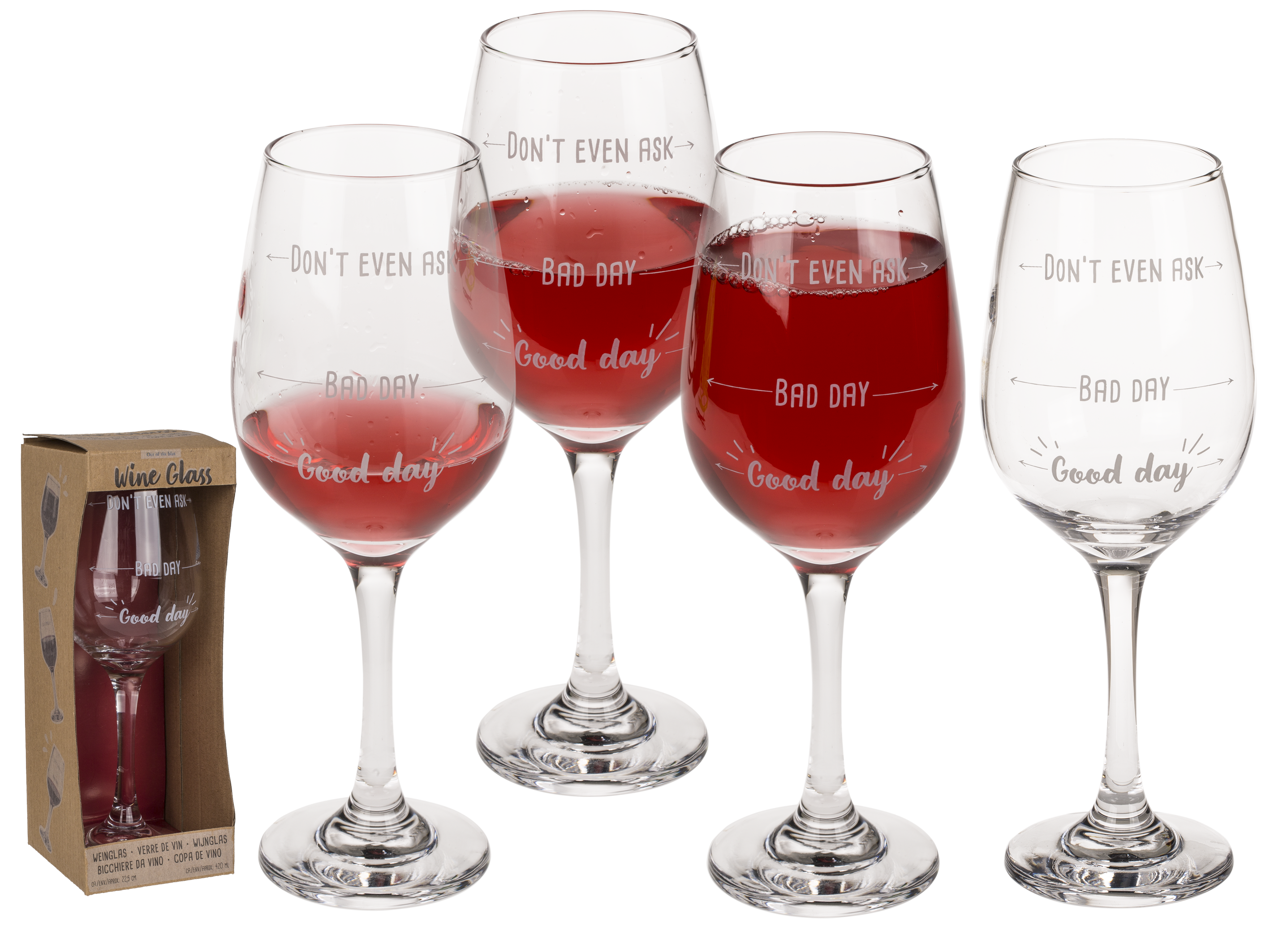 Montako senttiä viiniä laitetaan? Tässä lasista näkee oliko kyseessä hyvä, huono vai tosi huono päivä. Ei konepesua