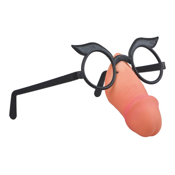 Muoviset silmälasit kuljakarvoilla ja \"Willy\" nenällä.