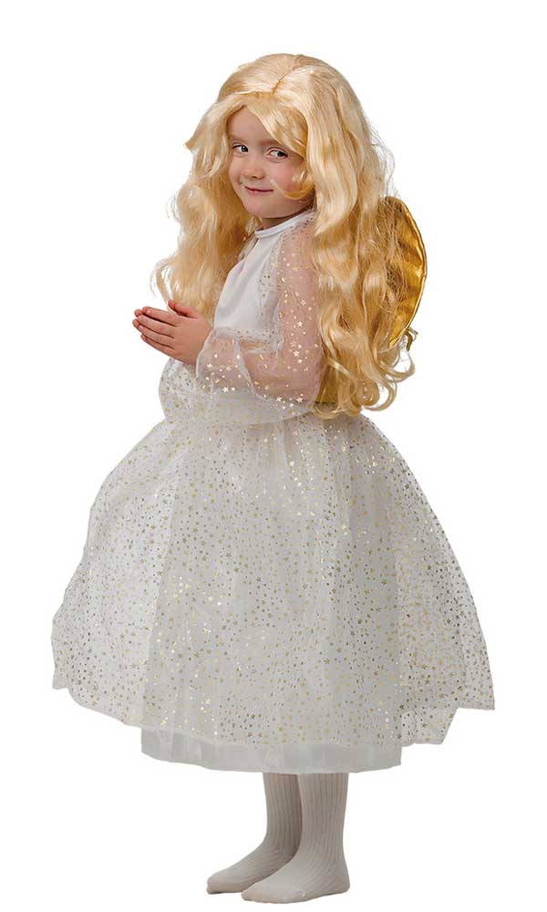 Asu sisältää mekon ja kultaiset pehmyt siivet. Koko 92-104cm.
