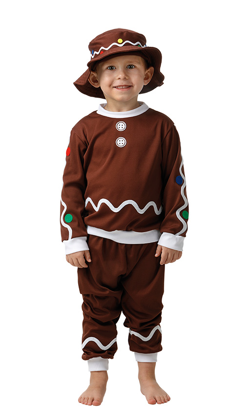 Suloinen Piparkakku puku. Käy niin tytölle kuin pojalle. Pukuun kuuluu paita, housut ja lakki. Koko ikäluokille 2-3V (92-104cm)