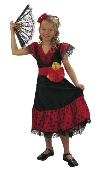 Kaunis puna-musta tanssitytön mekko vyöllä. Puku sisältää myös hiuskoristeen. Koko ikäluokille 4-6V