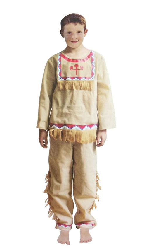 Tyylikäs intiaanipojan asu, sis. housut, paidan ja pääpannan sulalla. Koko 5-7V ikäluokille 120cm.