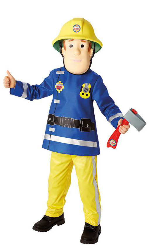 Kaikkien lasten sankari. Palomies Sami puku. Pukuun kuuluu Pehmyt kasvonaamari silmä ja nenäaukoilla, kirves ja paita sekä housut.
