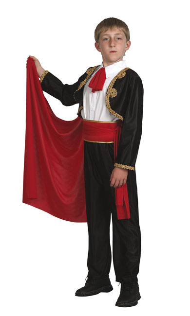 Luxe härkätaistelijan pukuun kuuluu liivi punaisella viitalla, vyö ja kaulus.