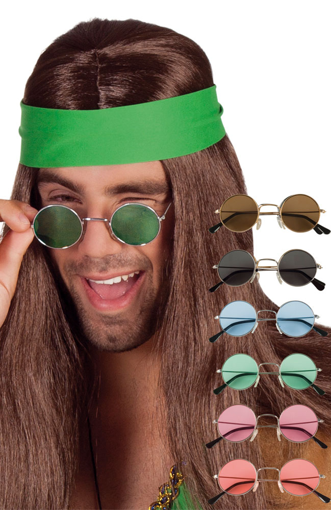 Aurinkolasi John, ruskeat pyöreät lasit kullanvärisillä kehyksillä.